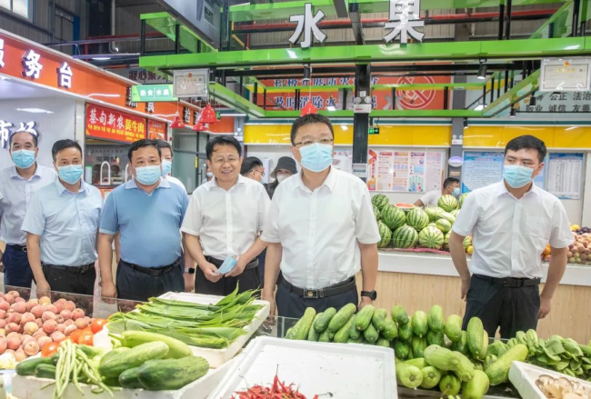 吴之凌一行先后来到亚东市场、腾龙市场,实地查看市场内外部环境卫生、功能布局及疫情防控等情况。在随后召开的座谈会上,相关市直部门汇报了商务领域稳增长有关情况。认真听取汇报后,吴之凌强调,农贸市场升级改造,是今年我市“十件民生实事”之一,是重要的民生工程、民心工程,各级各部门要切实提高政治站位,将其作为推动创文、城市有机更新的重要抓手,有力有序推进,不断提升人民群众的幸福感和获得感。