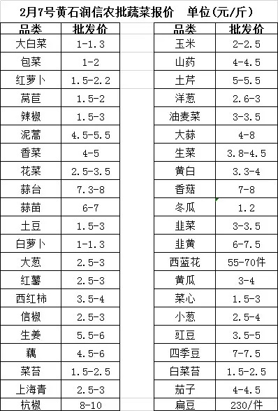 土豆的批发价格在1.5—3元/斤, 白菜的批发价格在1—1.3元/斤,