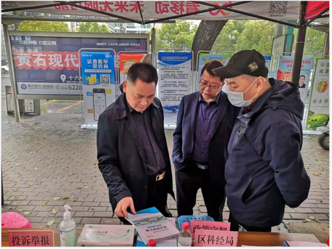 3月15日上午,区科经局联合区市场监督管理局等部门在武商超市广场团城山店,开展“3·15”国际消费者权益日宣传活动。