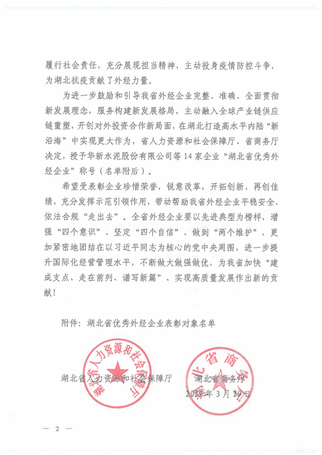 华新水泥、十五冶获全省优秀外经企业表彰