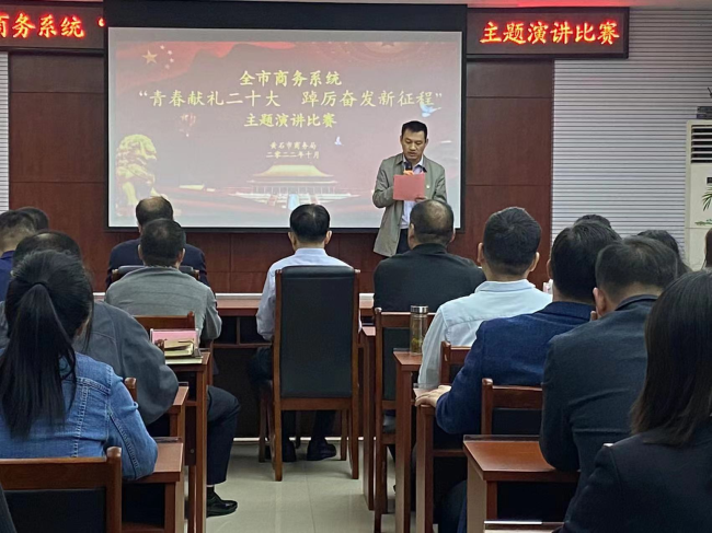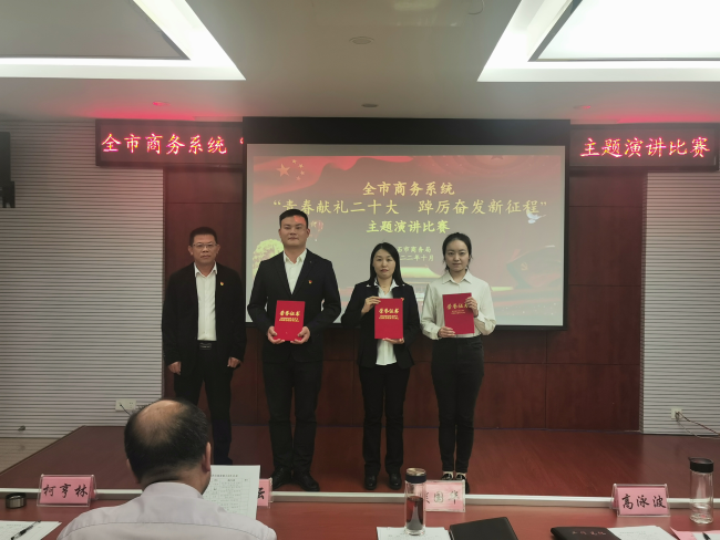 10月14日上午,市商务局317会议室不时传来阵阵掌声,一场以“青春献礼二十大 踔厉奋发新征程”为主题的商务系统演讲比赛正在如火如荼的进行,市商务局领导班子、全体干部职工及县市区商务部门干部代表共70余人参加了本次活动。来自各县市区、局机关的17名青年干部同场竞技、展现风采,推动全市商务系统党员干部以实际行动迎接党的二十大胜利召开。