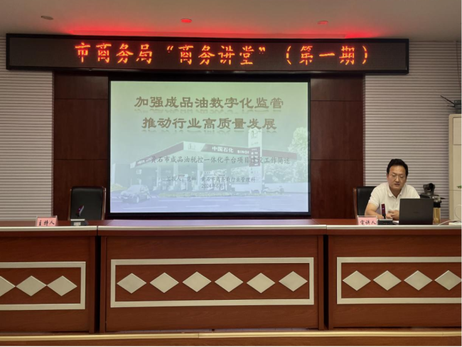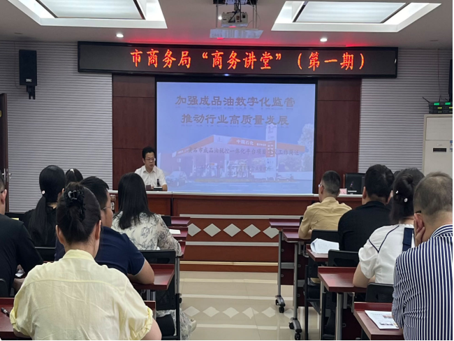2024年第一期“商务讲堂”由行业管理科科长范科授课,他结合工作实际,以黄石市成品油税控一体化平台建设工作为主题,从为什么要建成品油税控一体化平台、什么是成品油税控一体化平台、如何建成品油税控一体化平台、目前工作成效及下一步计划四个方面与大家做了分享交流。青年干部纷纷表示,报告内容主题鲜明、内容丰富,重点突出、联系实际,不仅帮助大家进一步了解商务各方面的重点工作,同时也对日常工作有很好的启发指导作用。