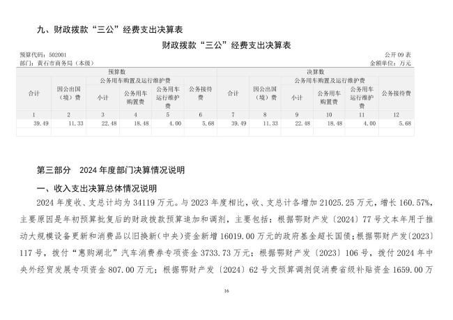 黄石市商务局(本级)2024年度黄石市直部门(单位)决算公开