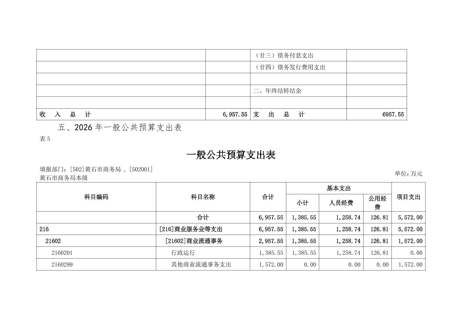 2026年度黄石市商务局本级部门预算公开情况说明