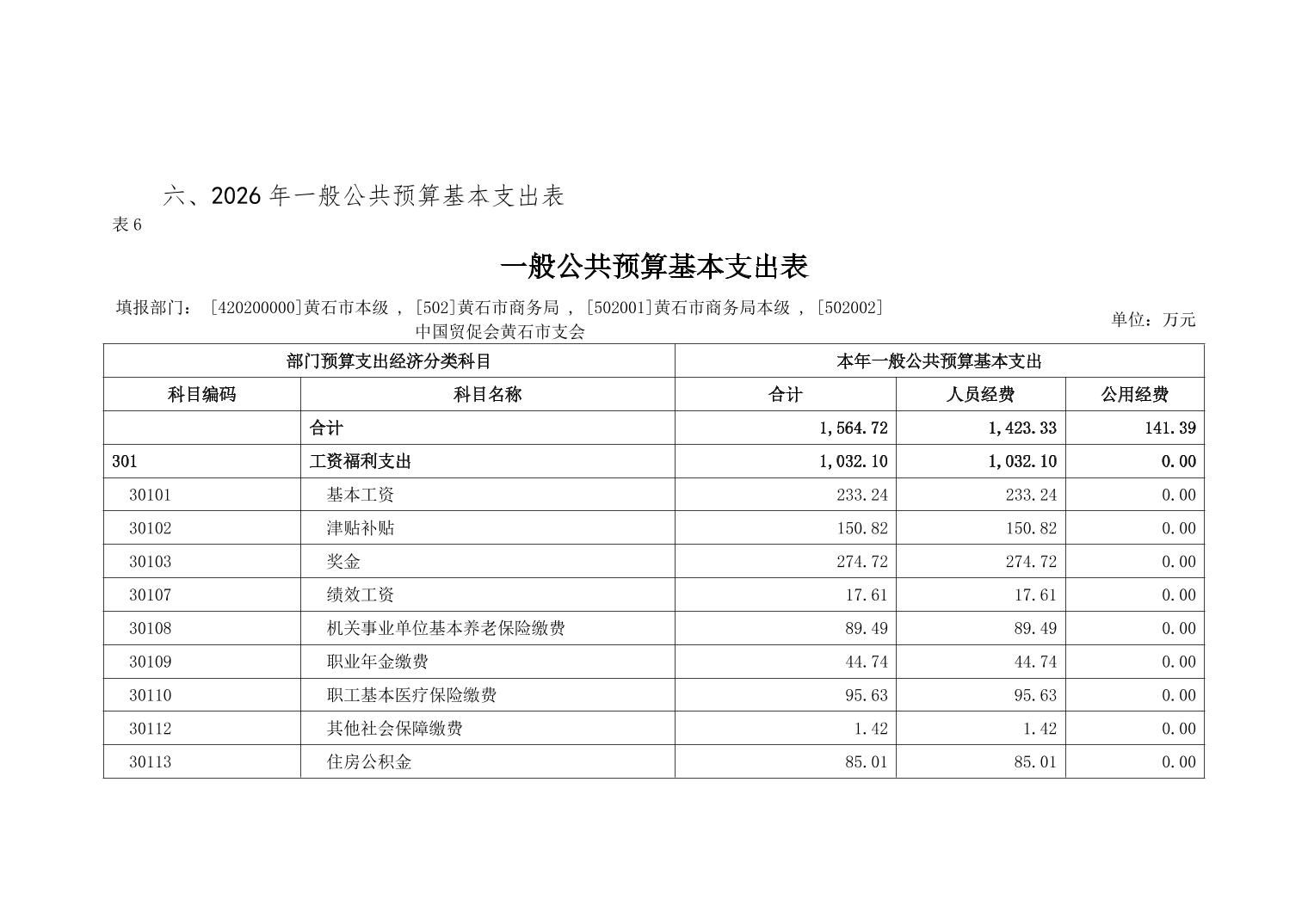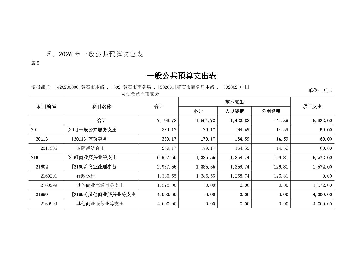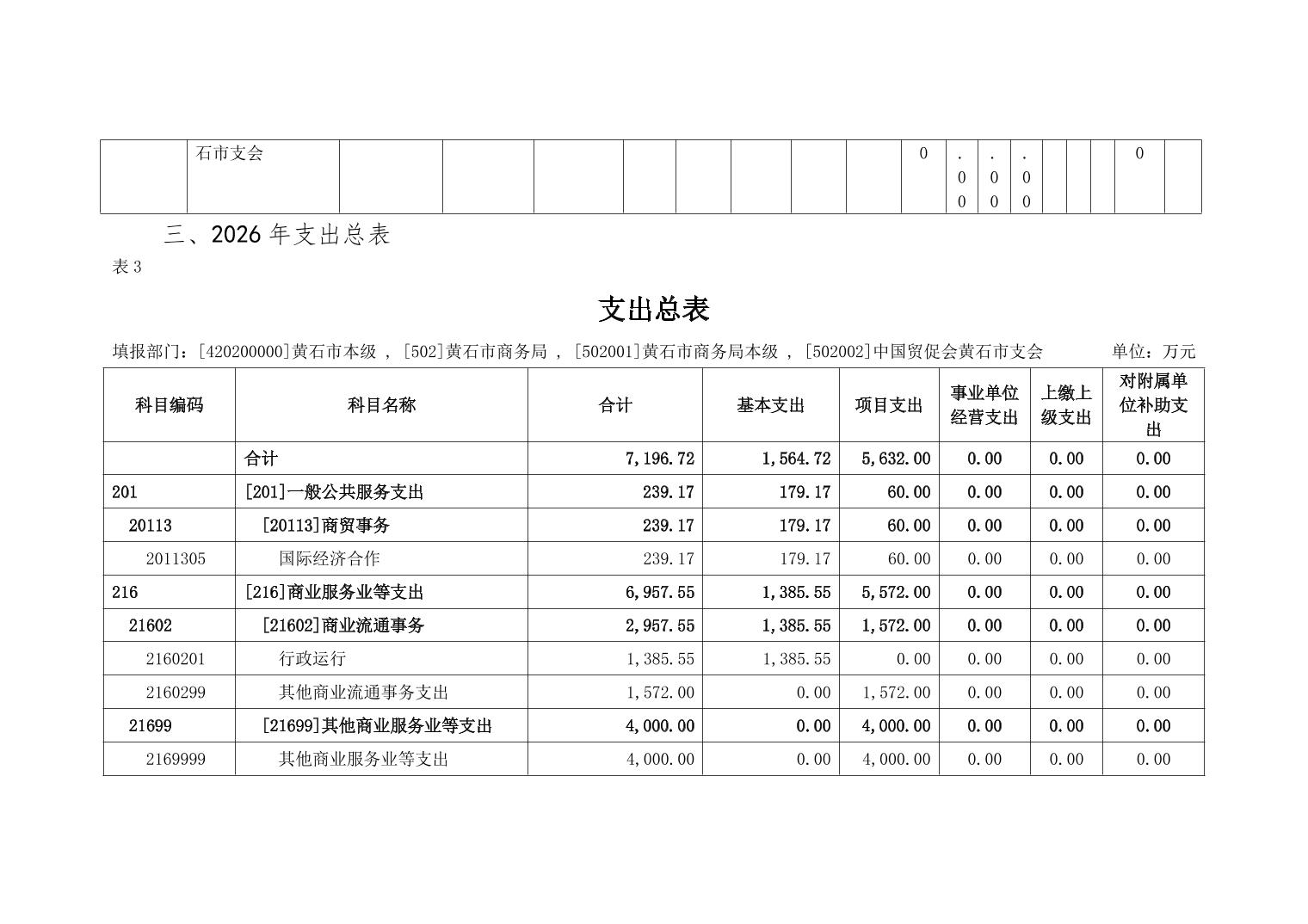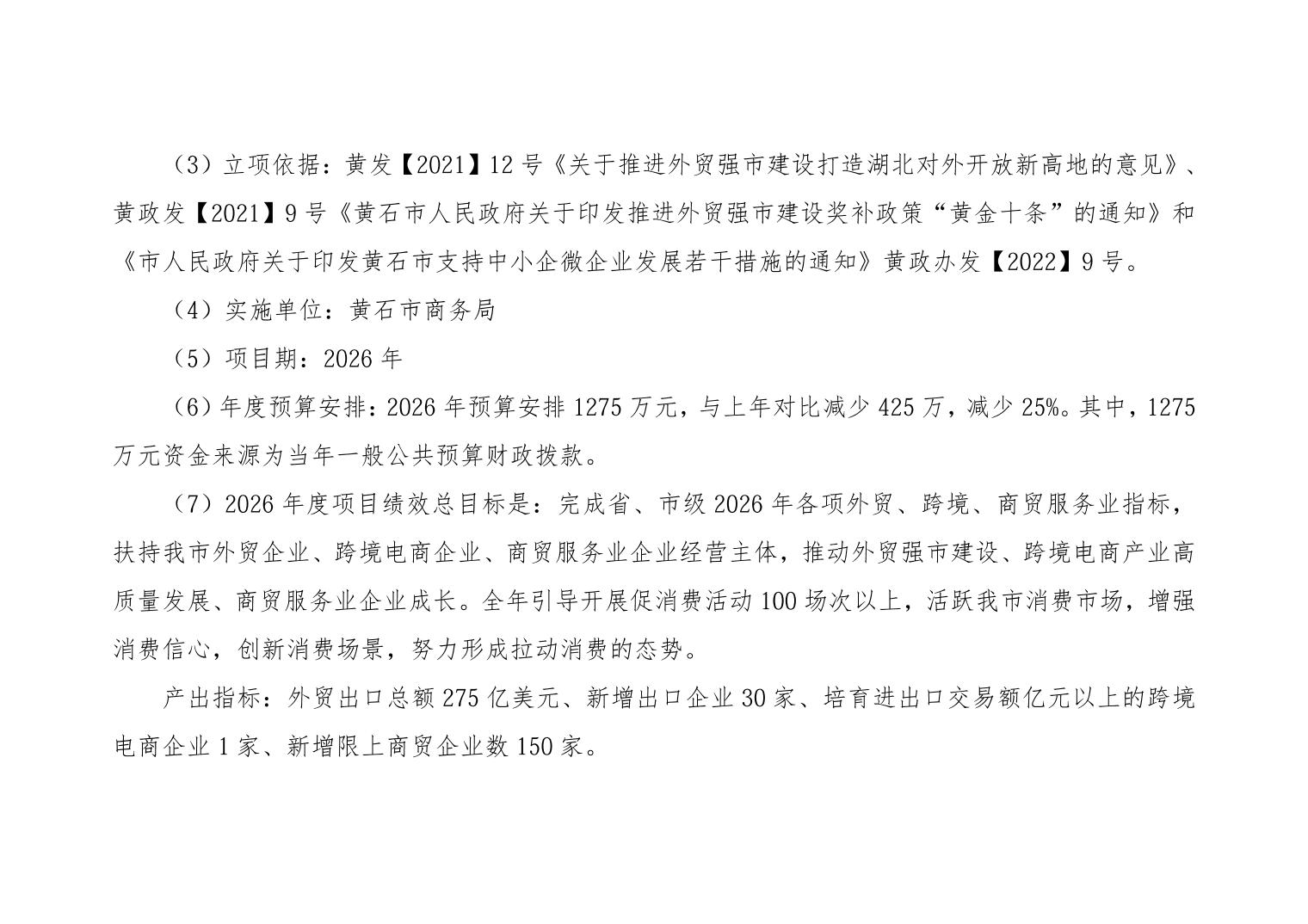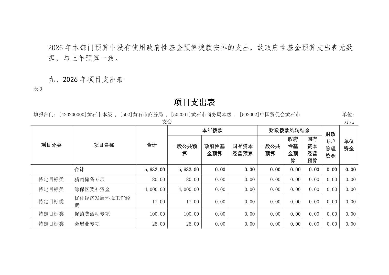2026年度黄石市商务局汇总部门预算公开情况说明