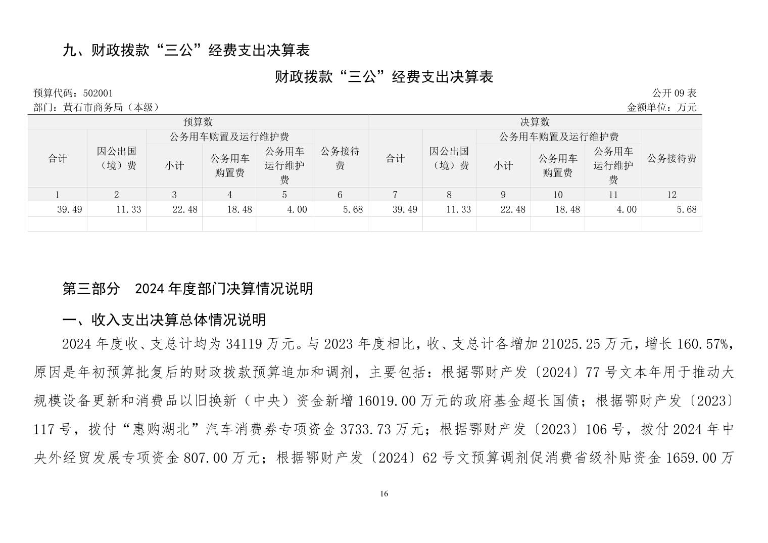 黄石市商务局(本级)2024年度黄石市直部门(单位)决算公开